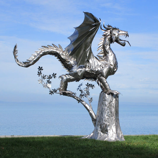 Drache ohne Flügel am Baum (Edelstahl) 140x290x292 76kg