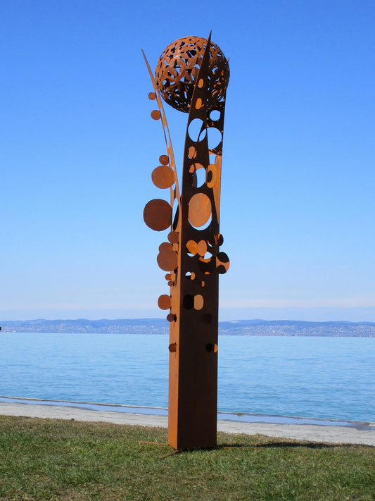 Dreieck-Säule mit Kugel (rostig) 70x75x268 19kg