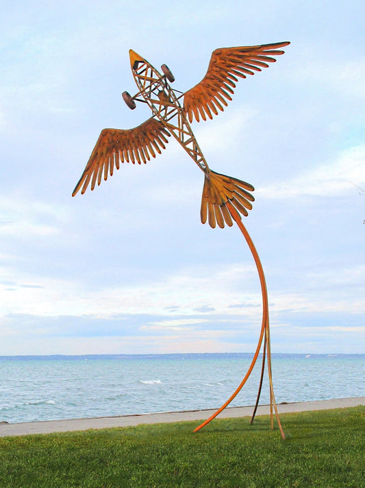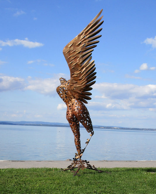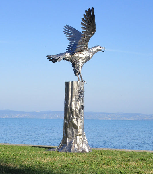 Großer Adler auf Baum (edelstahl) 160x185x385 57kg