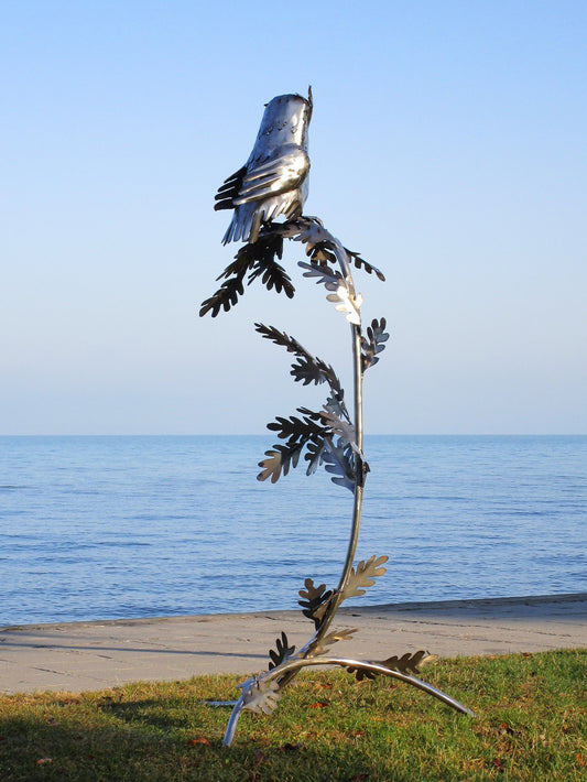 Eule am großen Ast (edelstahl) 78x87x170 6,9kg