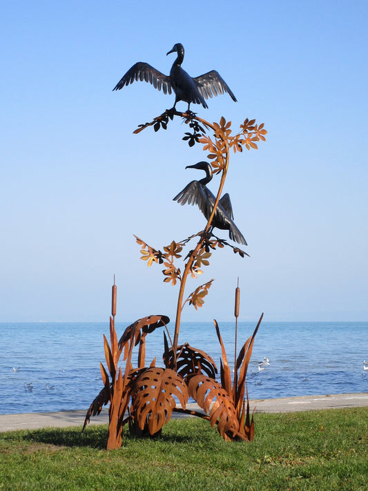Kormoranpaar im Wildnis (edelstahl) 115x113x270 23kg