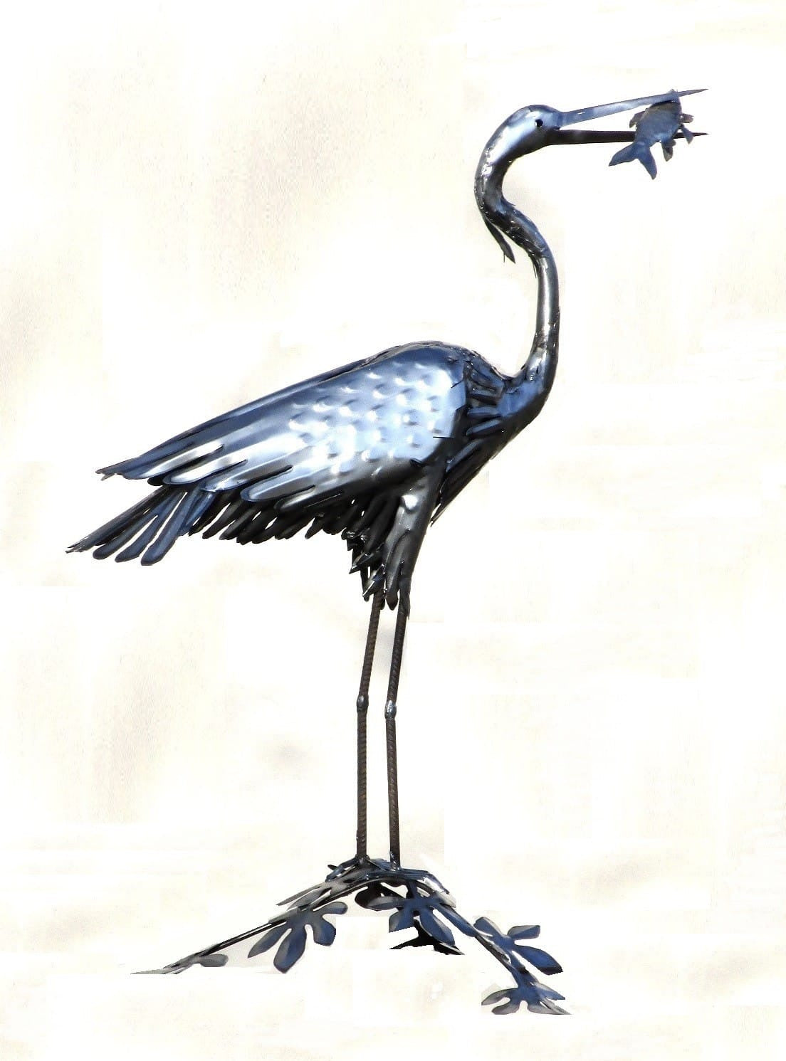 Reiher mit Fisch (edelstahl) 50x105x110 4,7kg