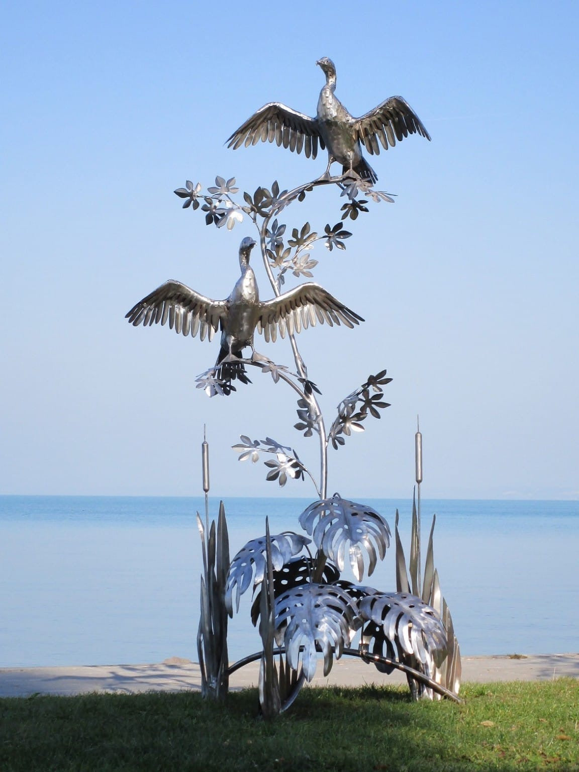 Kormoranpaar im Wildnis (edelstahl) 115x113x270 23kg
